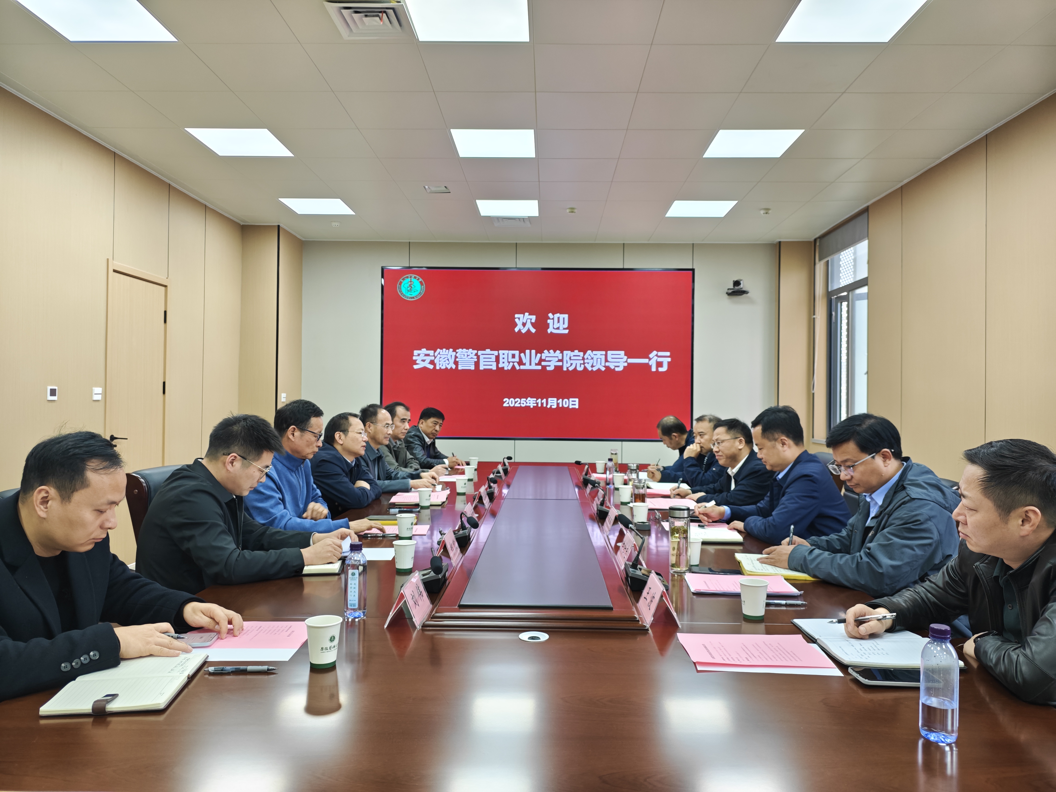 11月10日下午,安徽警官职业学院党委副书记、院长操申斌带队来我校新医科中心开展工作调研。校党委常委、副校长田仰华会见调研组并主持交流座谈会。