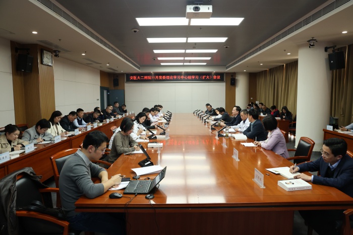 11月11日下午,第二附属医院召开党委理论学习中心组学习(扩大)会议,专题学习党的二十届四中全会精神。院党委中心组组长、党委书记周典主持会议并讲话,在院领导班子成员参加会议。