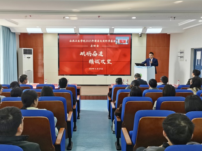 11月13日,公共卫生学院举办2026年国家自然科学基金项目申报动员会,学术副校长张智出席会议并讲话。