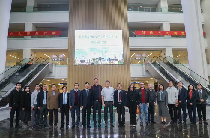 11月15日下午,德国汉堡大学代表团一行前往我校第一附属医院西区(高新院区)参访交流。校党委常委、副校长吕雄文会见代表团,并座谈交流。