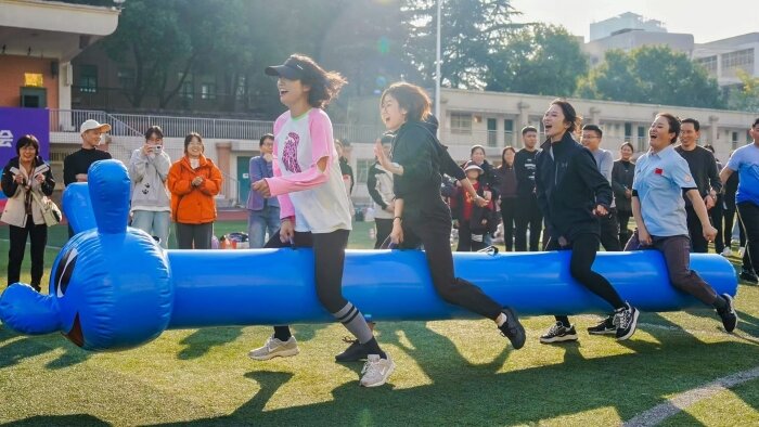本届教职工运动会赛程为期一天,共有23个单位参赛。赛事设置兼具竞技性与趣味性,包含100米、铅球、立定跳远等7个田径项目,定点投篮、跳绳、足球九宫格射门等3个趣味项目,以及闪电纵队、疯狂毛毛虫等2个集体项目,充分满足了不同年龄段、不同运动特长教职工的参与需求,真正实现了“全员参与、共享运动快乐”的办赛理念。