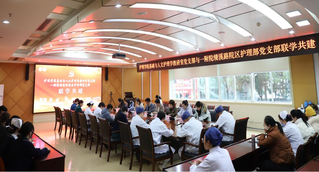 2月3日,护理学院基础与人文护理学教研室党支部与第一附属医院绩溪路院区护理部党支部开展联学共建活动。护理学院党委书记薛磊、副院长赵梅参加活动,活动由第一附属医院护理部部长胡少华主持。