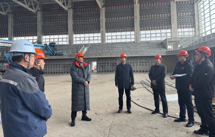 2月26日上午,校党委书记王琦深入体育中心建设现场,实地督导检查节后复工复产及安全生产工作,向一线建设人员致以新春问候。校党委常委、副校长邱志海陪同。