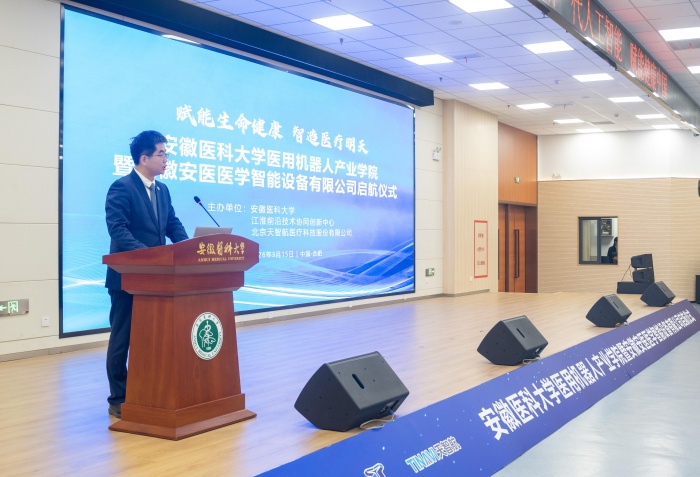 邱志海表示,我校依托百年办学积淀与深厚学科优势,紧扣医用机器人产业发展的时代浪潮,明确了产业学院的建设目标、发展路径与核心任务。产业学院将以“好学力行,造就良医”的校训精神为引领,传承弘扬“厚德、担当、创新、开放、为民”的百年安医精神,深耕产教融合沃土,聚力核心技术攻关,培育医用机器人领域专业复合型人才,为新时代医学教育高质量发展和医疗卫生事业现代化建设注入强劲新动能。