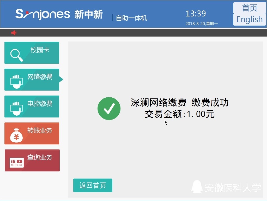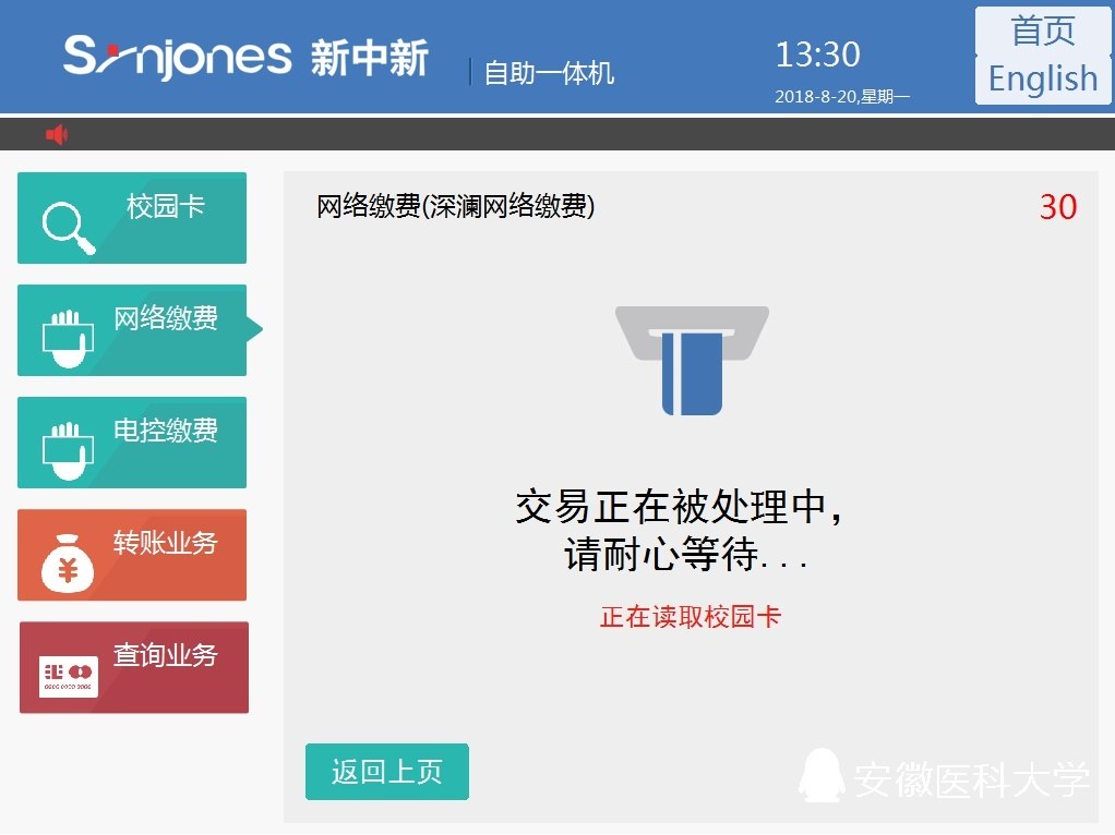 通过新校园卡圈存机缴纳上网费用示意图如下: