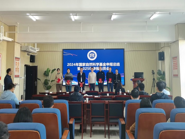 会上,何婷婷为获得表彰的教师颁发荣誉证书,对获得2024年国家自然科学基金项目的教师进行表彰。