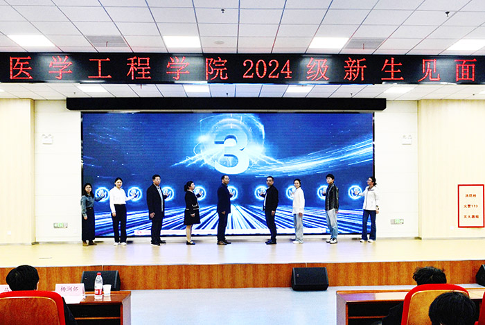 学院全体领导班子、各系部负责人、年级辅导员和全体2024级新生参加见面会。会上,学院师生代表共同上台,以掌为印,共同“开启”2024级新生的医工筑梦之旅。(生物医学工程学院 付娜 巢春燕)