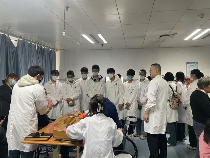 一附院康复科组织了一支由多位资深医师与技师组成的带教团队,结合临床实际与运动康复领域的最新发展动态,精心研讨并设计了内容丰富、形式多样的见习内容,在学生见习期间给予详细讲解。同学们在带教老师的耐心指导下,学习了解最新的康复理念与技术,认真观摩各项康复治疗过程,系统性学习并亲身体验了包括作业治疗、言语治疗、针灸治疗、运动治疗和物理治疗等在内的康复工作具体内容。