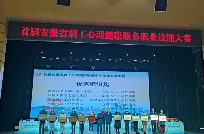 11月27日至28日,由安徽省总工会、省卫生健康委主办的首届安徽省职工心理健康服务职业技能大赛决赛在合肥举办,我校工会组队代表省教科文卫体工会参赛,获得“优秀组织奖”荣誉。