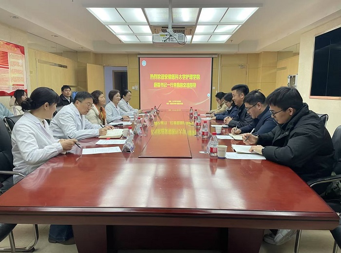 1月20日,护理学院党委书记薛磊、院党委副书记王磊、副院长李树雯一行,前往安徽省立医院(中国科学技术大学附属第一医院),开展访企拓岗促就业暨实习生春节慰问活动。省立医院副院长、工会主席储晓红,人力资源部部长周浩泉、护理部主任储爱琴等出席座谈会。