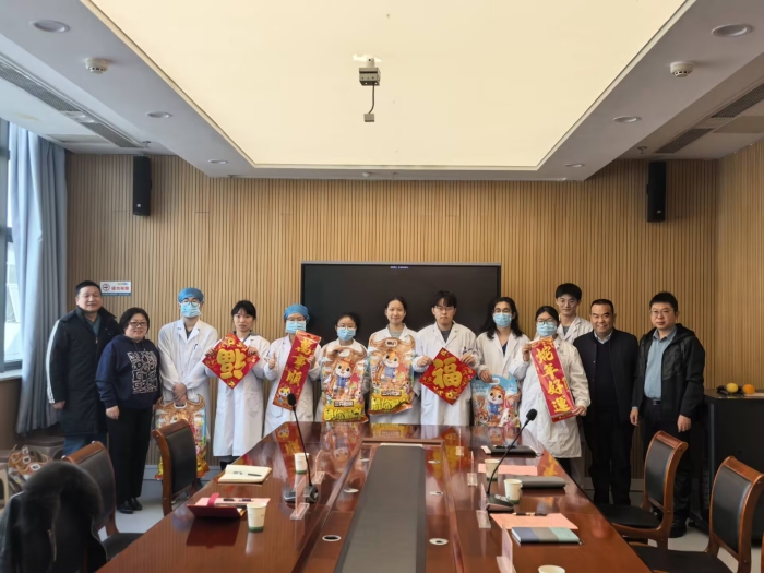 蛇年新春佳节期间,第一临床医学院学生党总支班子和辅导员分别走访安医大一附院、二附院、解放军联勤保障部队第901医院等实习单位,为坚守在工作岗位上的实习同学送去新年祝福,并送上学院准备的“暖心礼包”。