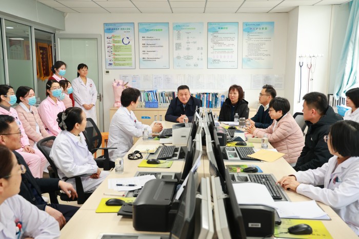 吴海明一行先后到儿科二病区、一病区,与儿科主任刘德云等医护人员亲切交流,详细了解儿科患者的诊治情况和病区运行情况,对儿科医护人员持之以恒的敬业精神和辛勤付出给予充分肯定。在“三八”国际妇女节到来之际,他向奋战在医疗护理岗位上的女性医务工作者表示诚挚的感谢和问候。吴海明表示,救治患儿的工作十分辛苦,希望大家在工作中坚守一切以患儿为中心的初心,继续为患儿做好服务,同时要关注自身健康,合理安排工作和休息时间。
