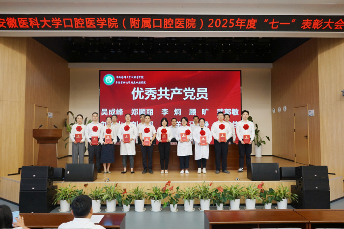 6月26日下午,口腔医学院(附属口腔医院)在高新院区18楼学术报告厅召开2025年度“七一”表彰大会。该院党委书记刘颀出席会议并讲话,院长王元银主持,院领导班子成员出席。
