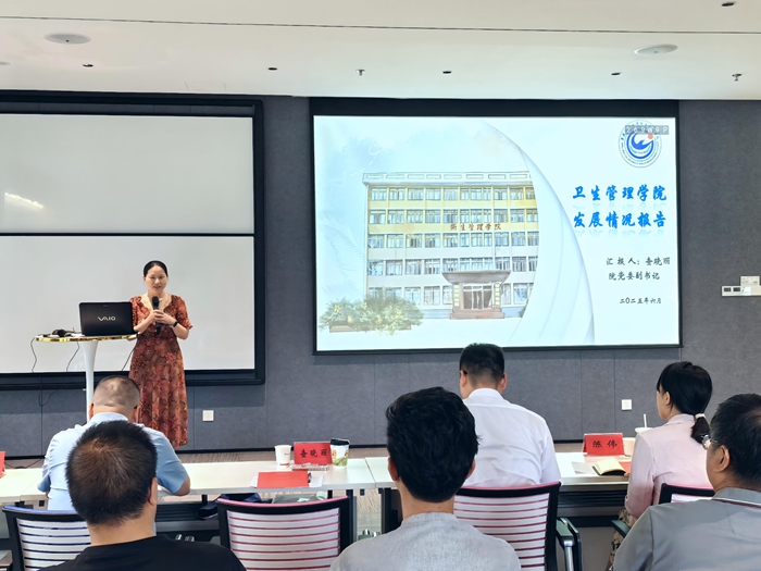活动中,查晓丽向与会人员详细介绍了华体会平台卫生管理学院的基本情况,并就学院的师资力量、专业布局、学科建设及科研工作等进行了重点推介。