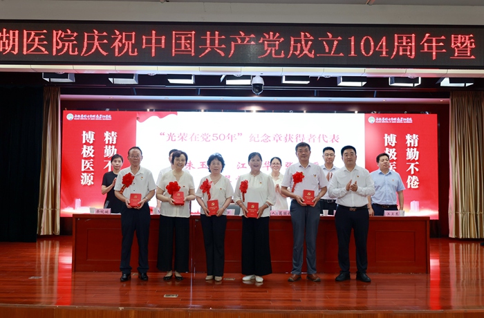 凌春笋代表院党委、行政向全体共产党员致以节日的问候,向医院“光荣在党50年”的老党员致以崇高的敬意,向受表彰的先进集体和优秀个人表示祝贺,向辛勤付出、不懈奋斗的广大党员干部和全体师生医护员工表示衷心的感谢。他表示,2025年以来,院党委毫不动摇坚持和加强党的全面领导,落实新时代党的建设总要求,以严的标准和自我革命精神纵深推进全面从严治党,以高质量党建推动医院高质量发展,用实际行动践行着为人民健康保驾护航的初心使命,为医院高质量发展注入源源不断的红色动能。