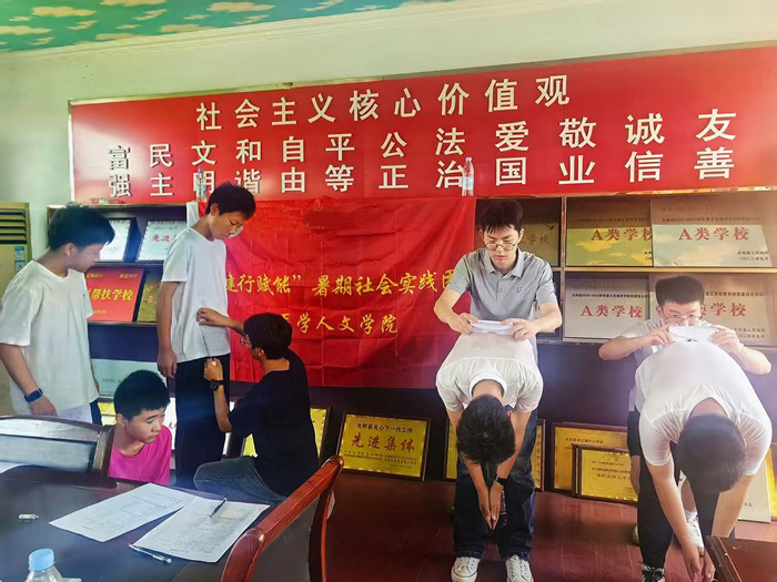 实践团深入太和县七所乡镇中学,对三百余名中小学生进行了细致的脊柱侧弯筛查工作,并根据实际情况,将筛查工作分为四个小组有序展开。