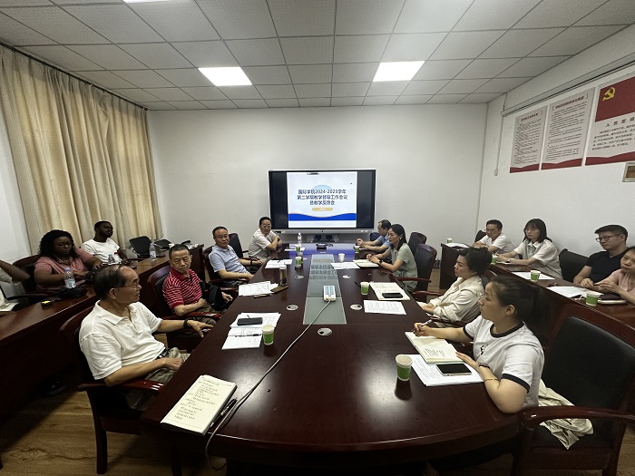 学院督导专家、教育质量评估中心代表、相关授课教师代表、留学生代表及院科教办工作人员参会。(国际学院 李旻睿)