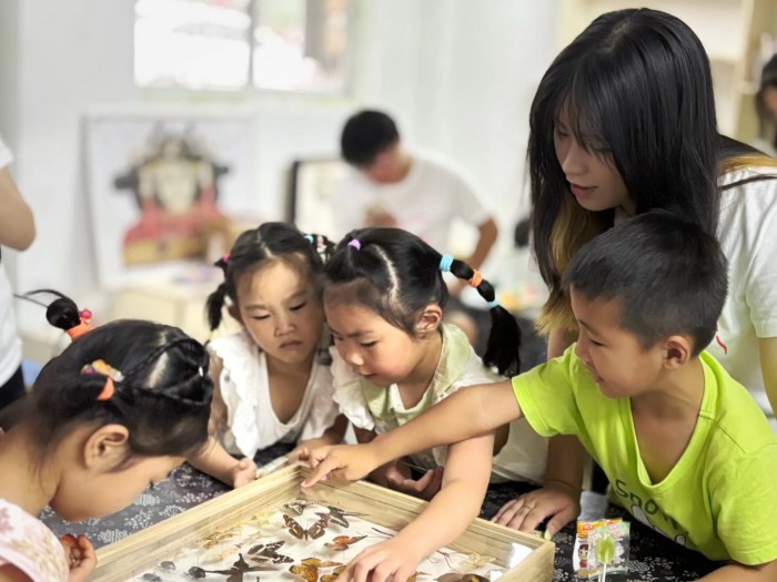 在七里塘社区竹溪社居委,实践团队精心打造了丰富多彩的暑期儿童课堂。课程内容融合专业与趣味,带领孩子们开启科学探索之旅。“人体奥秘大冒险”中,队员们化身“人体向导”,利用生动教具讲解心脏、肺等器官的功能,并通过“人体拼图”挑战赛寓教于乐;“动植物王国奇妙游”与“植物微观侦探社”课堂中,孩子们观察昆虫标本,动手制作植物书签,更借助显微镜清晰观察到细胞结构,惊叹于微观世界的“绿色奇迹”;急救技能实践课上,实践团则现场演示并指导孩子们动手练习心肺复苏与海姆立克急救法。实践团还将社区儿童带入学院实验室,近距离了解实验设备,体验显微镜的使用,进一步激发孩童的科学兴趣。