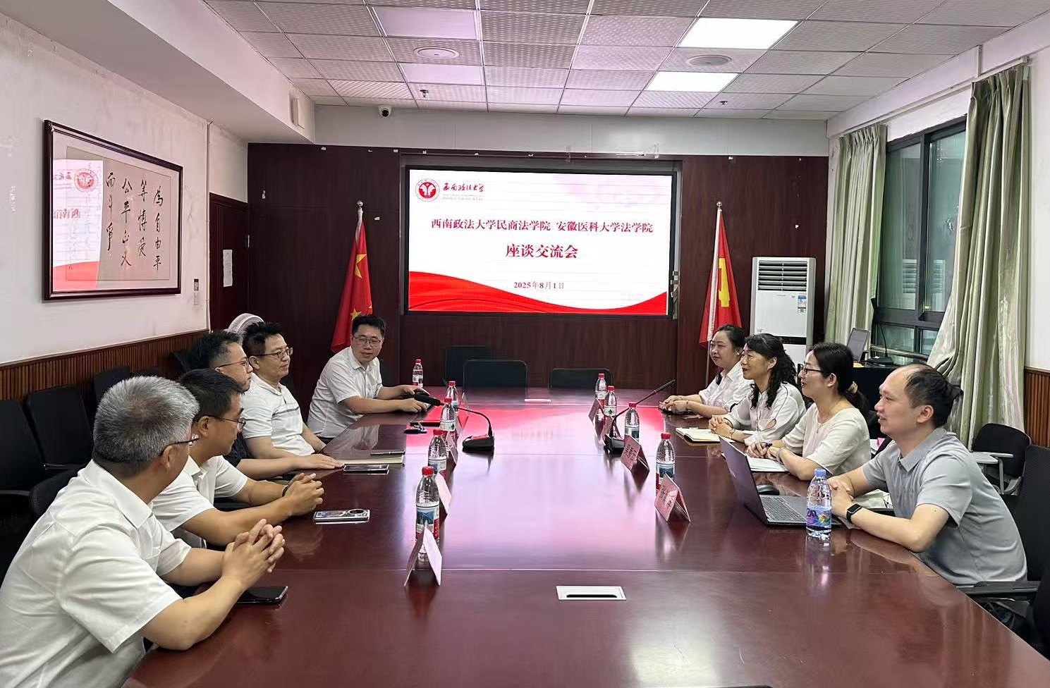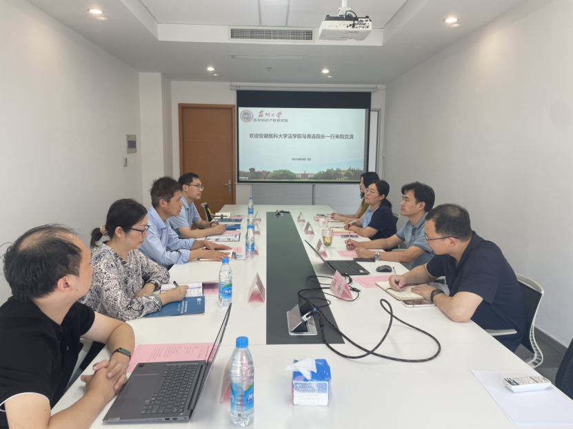 该院院长马青连、院党委副书记刘燕、副院长范辉率队调研,在座谈中介绍了学院的办学历史、学科特色、师资力量、华体会平台、社会服务等方面的基本情况。院领导表示,依托华体会平台的优势学科和安徽的战略性新兴产业,学院以“法学+医学”“药学+知识产权”为特色方向,近期正在积极建设校级知识产权实验与实践中心。该中心集教学、科研、社会服务功能于一体,能够为知识产权实践课程教学、医药知识产权学术研究、知识产权鉴定与科技成果转化等社会服务工作提供平台支撑。希望通过此次调研学习,与西南政法大学、苏州大学在知识产权学科建设、教学科研、华体会平台等方面加强交流,在知识产权保护、智库资源共享与平台建设等社会服务维度开展实质性、深层次合作。