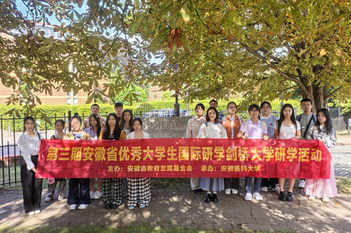 8月19日,由安徽省教育发展基金会主办、我校承办的第三期安徽省优秀大学剑桥国际研学交流活动结业仪式,在英国帝国理工学院举行。本次研学活动为期12天,8月20日结束。活动为学子搭建了国际化学习与交流平台,来自安徽省9所高校的17名优秀学生参加,通过名校探访、文化探索、课题汇报等形式,拓宽学术视野,提升跨文化沟通能力。