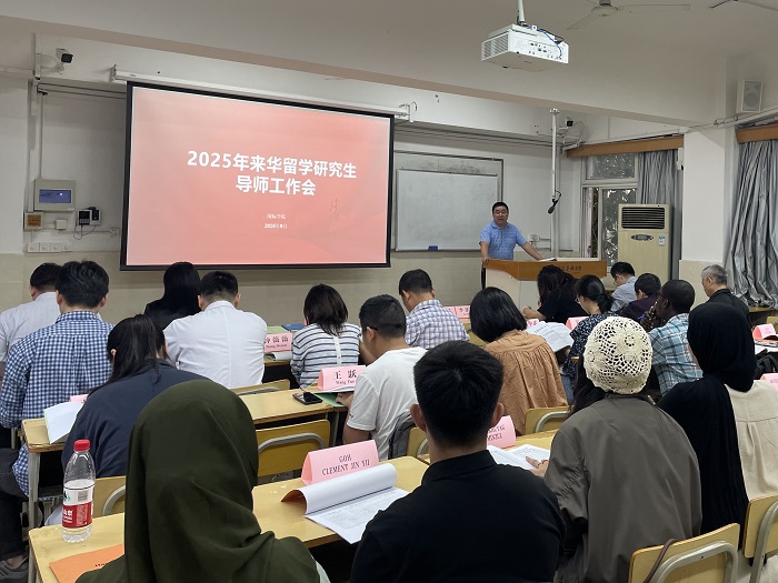 2025级11名已报到来华留学研究生、全体导师及所在培养单位管理人员,国际学院相关工作人员参加会议。(国际学院 袁嫚嫚)