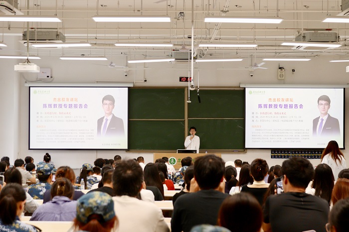 报告会上,陈辉深情回顾了在母校的求学岁月,并结合自身从临床医学专业学习到中国科学院深造,再到中欧国际工商学院攻读工商管理硕士(MBA)的学术与职业跨越,分享了在医药企业推动“AI+研发”新范式、引领创新转型的实战经验。他系统剖析了当前医药行业的格局与机遇,指出中国医药产业正迈向全球创新前沿,鼓励同学们夯实专业基础、拓展跨界思维、勇担时代责任。“医药不仅是一份职业,更是一场关乎人类健康的远征。希望你们保持热爱、敢于突破,努力将‘中国制造’升华为‘中国标准’,在重大疾病领域为世界带来更多中国方案。”面对学弟学妹,陈辉寄语道。
