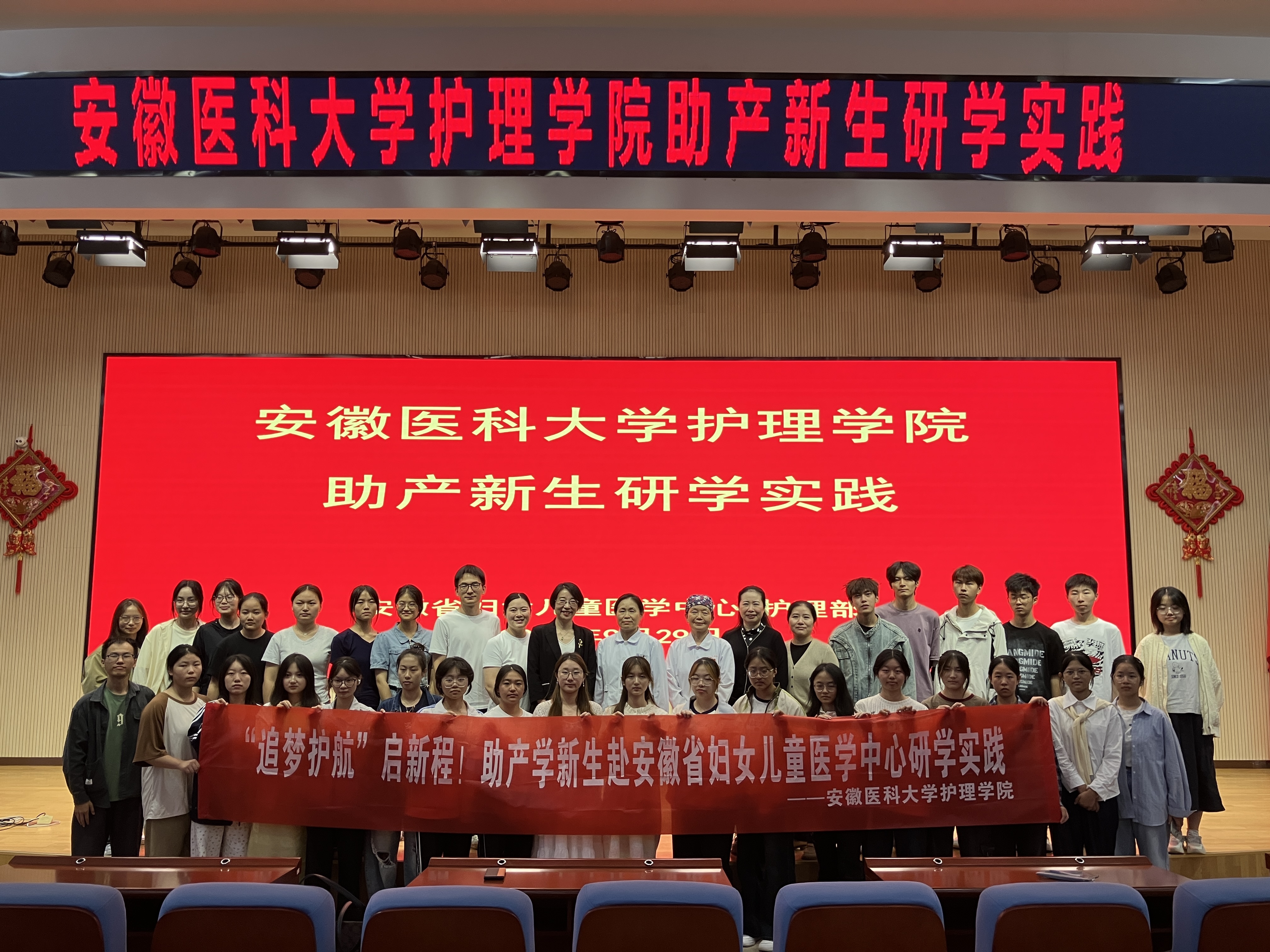 当日下午,新生各专业开启“追梦护航”之旅。赵梅和教研室教师带领助产学专业新生前往安徽省妇女儿童医学中心开展研学实践活动。我校第二附属医院护理部相关负责人为护理学专业新生作专题讲座,鼓励同学们以爱心为发展根基、以专业技能为成长羽翼,满怀热忱,开启属于自己的护理新征程;该院老年与社区护理学教研室负责人围绕养老服务管理专业建设、培养体系、就业去向等,为养老服务管理专业新生作了详细介绍。