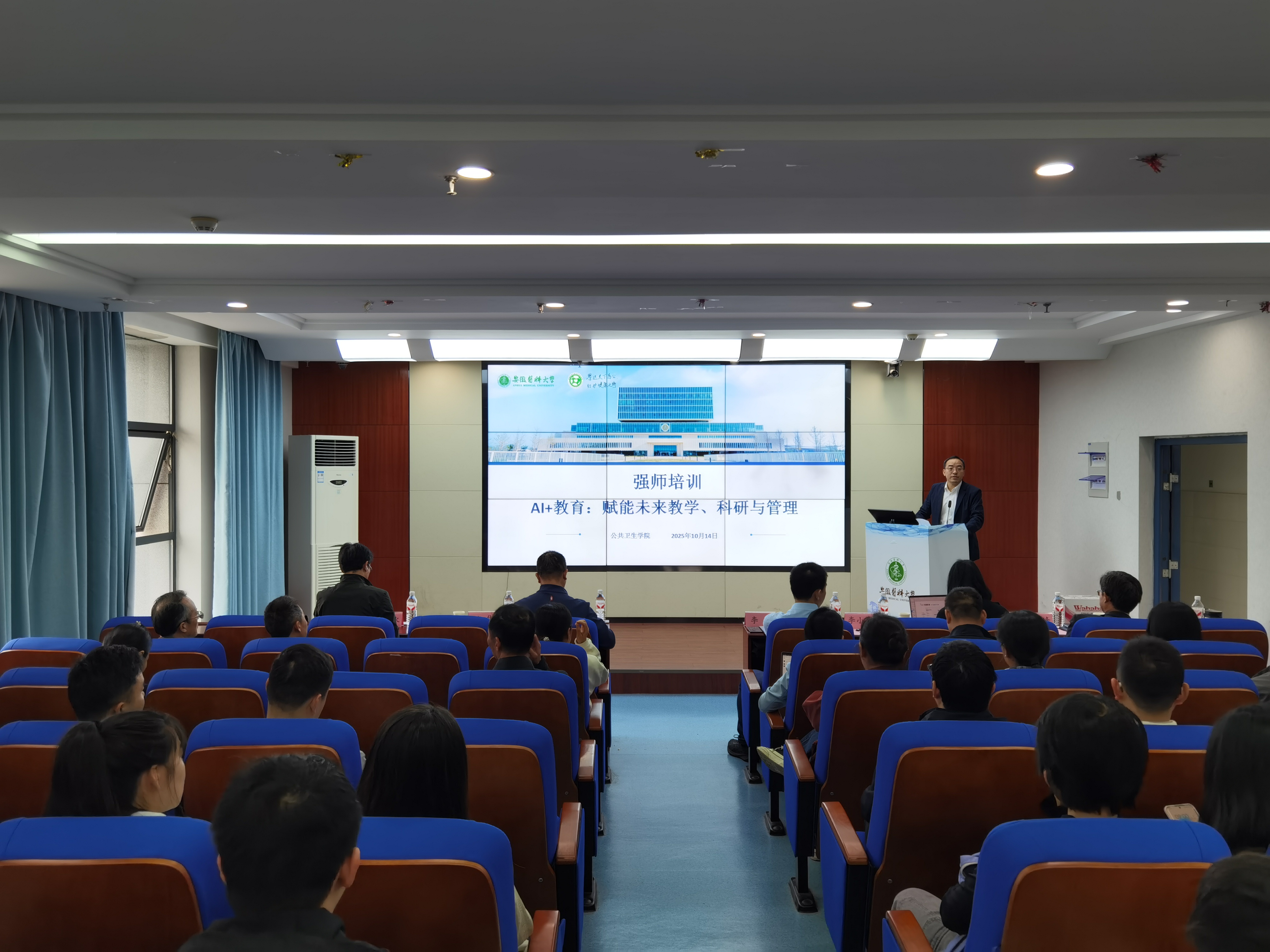 10月14日上午,公共卫生学院以"AI+教育:赋能未来教学、科研与管理"为主题开展强师培训,科大讯飞高教研究院院长李礼、智慧树网知识图谱事业课程总监张珈翊和华体会平台第一附属医院副院长李小虎三位专家受邀进行专题讲座。公共卫生学院院长王华致欢迎辞,副院长万宇辉主持培训会。