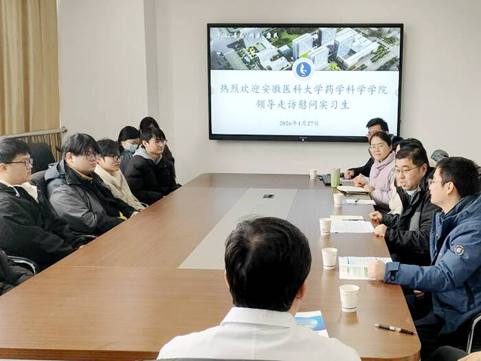 1月27日,药学科学学院党委副书记、纪委书记李晓松带队到第一附属医院临床研究医院、第五附属医院和合肥科颖医药科技有限公司看望慰问实习生,并同步推进“访企拓岗”促就业专项行动。