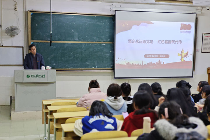 近日,法学院在南校区举办学党史主题活动,校关工委讲师团成员陈海燕受邀作了题为《坚定永远跟党走,红色基因代代传》的专题报告。该院党委副书记刘燕出席活动。