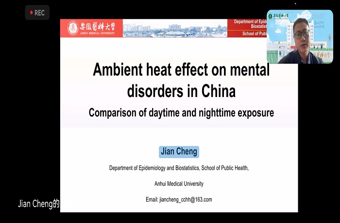 公共卫生学院潘海峰教授、程健教授受澳大利亚著名高校昆士兰科技大学邀请,分别作了题为《空气污染和气象因素与自身免疫性疾病的关系》和《中国日间和夜间高温暴露对精神健康的影响》的学术报告。流行病与卫生统计学系2021级硕士研究生吴柯禺作题为《昼夜温差可能是儿童感染性腹泻发病的危险因素》的报告。三人的研究报告从不同角度探讨了气候变化和空气污染对重点地区和人群健康的影响,并结合我国实际提出了加强气候变化和空气污染协同治理,以达到治理空气污染和减缓气候变化“双赢”局面的可行性措施,为我国当下“碳达峰和碳中和”路径下如何降低区域性空气污染和气候变化的健康危害提供了科学依据。