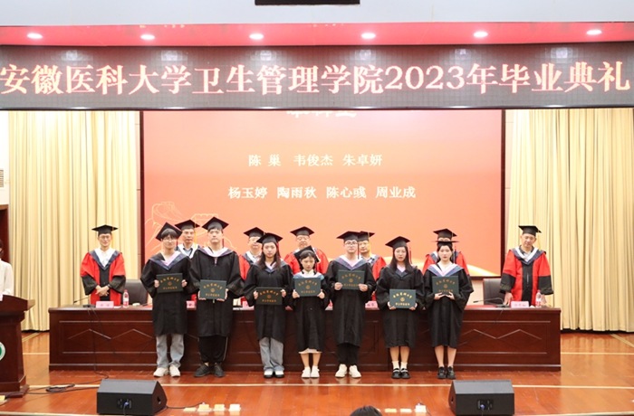 6月28日上午,卫生管理学院举行2023年毕业典礼暨学位授予仪式,239名卫管学子圆满完成学业,即将踏上新的征程。该院党委书记赵云峰,副院长肖锦铖、丁宏,安徽省医疗保障研究院常务副院长李绍华等出席典礼,并为全体毕业生拨穗正冠。典礼仪式由该院党委副书记胡鹏主持。