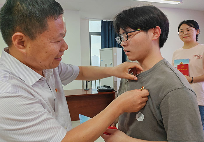 骆广东代表学院党委,希望新发展学生党员要进一步加强政治理论学习,用习近平新时代中国特色社会主义思想武装自己;要提高理论联系实际能力,牢记院训精神,饱学中西、知行并进,成为大国良医;要发挥党员先锋模范作用,促进学风、考风、班风建设,争做品学兼优大学生;要深化思想认识提高政治站位,衷心拥护“两个确立”、忠诚践行“两个维护”,增强党员自身行动自觉。