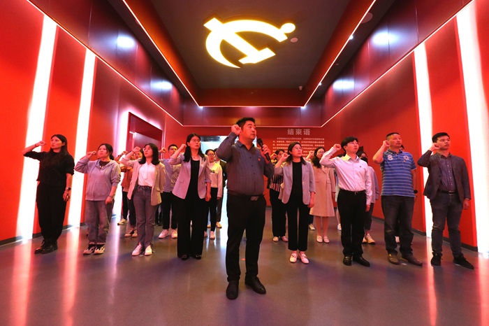 参观结束后,全体党员在宣誓厅现场重温了入党誓词。(发展规划处 吴红燕 精神卫生与心理科学学院 周燕)