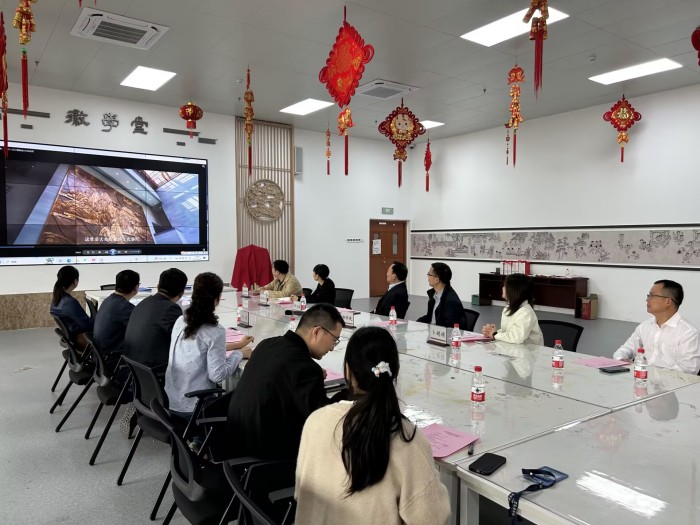 谢宜鹏向安徽博物院给予我校“大思政课”实践教学建设的大力支持表示衷心感谢。他在座谈交流中说,推动“大思政课”实践教学基地建设,是深入学习贯彻习近平总书记关于建设教育强国的重要论述,坚持不懈用习近平新时代中国特色社会主义思想铸魂育人,加快构建“大思政课”工作格局的重要举措;也是新时代思想政治理论课聚焦立德树人根本任务,落实坚持开门办思政课、提高思政课教学质量和教学效果的迫切需要;更是持续推进习近平新时代中国特色社会主义思想“三进”工作的迫切需要。希望能以此次合作共建为契机,双方在实践教学、第二课堂建设、课程思政建设、课程教材体系开发、师资力量培训、集体备课提质增效等诸多方面开展广泛深入的合作交流。