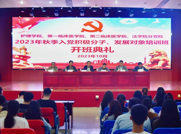 10月30日晚,护理学院、第一临床医学院、第二临床医学院、法学院等四所学院,在南校区联合举办2023年秋季入党积极分子、发展对象培训班开班典礼。校党委常委、组织部部长李阳新出席开班典礼并讲话。四所学院领导夏会林、鲍丙刚、薛磊、孙民、王磊等出席典礼。