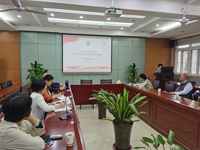 10月31日上午,离退休教职工党委召开理论学习中心组(扩大)会议,邀请校纪委副书记、纪委办公室主任邓廿庆作廉政专题报告,加强党风廉政警示教育。离退休教职工党委书记谢敏主持会议。