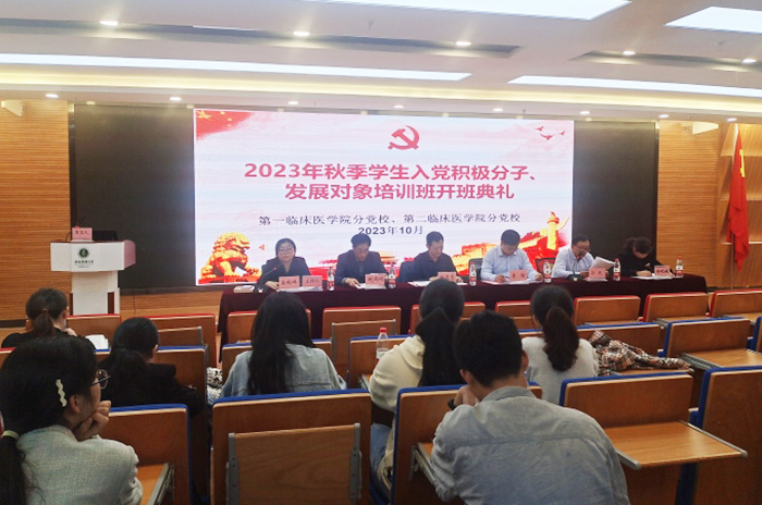 10月31日晚,第一临床医学院、第二临床医学院2023年秋季入党积极分子、发展对象培训班开班式在力行楼四楼多媒体教室举行。校党委组织部副部长、党校常务副校长白亮亮出席开班式并讲话。李琮、鲍丙刚、孙民、高晓妹、余皖婉等两所学院学生党总支领导班子成员出席开班式。