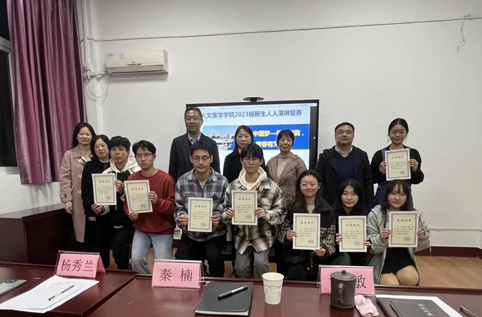 经过班初赛选拔,该院新生中的9名优秀选手获推荐参加复赛。比赛现场,同学们自信从容、热情高涨,紧扣“我的中国梦”主题,将“强国有我,青春有为”的担当和信念融入演讲当中,或从中国共产党筚路蓝缕的百年征程出发,歌颂革命先辈为实现民族解放而英勇牺牲的光荣事迹;或从伟大抗疫精神出发,赞扬新时代青年为了人民生命安全和身体健康而白衣执甲、奋勇拼搏的高度责任感;或以学校校友为例,讲述他们将青春融入祖国医药卫生事业发展的勇毅担当。经过激烈比拼,最终评选出一等奖1名,二等奖2名,三等奖3名,优秀奖3名。