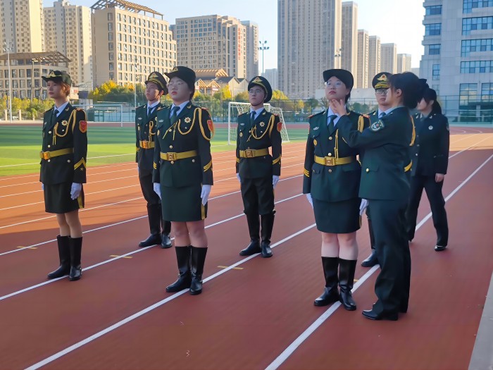 在操场上,退役大学生士兵对东校区国旗护卫队的训练进行了规范化指导,从仪容仪表到齐步的定臂,正步的端腿、定臂,齐正步连贯动作等,细致纠正队员们的动作。此外,退役大学生士兵还和队员们围绕团队沟通和团队协作,开展素质拓展活动,进一步加强队员之间的沟通和信任,培养团队凝聚力。