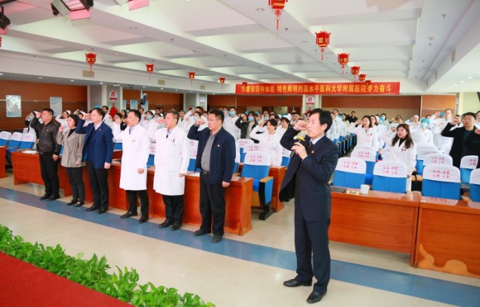 各党总支、党支部书记,党委各部门负责人,2023年度先锋岗优秀党员及2024年度全体先锋岗党员参加活动。全体党员面向党旗重温了入党誓词。(第二附属医院)