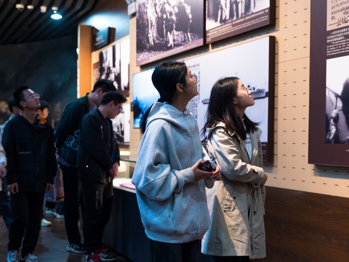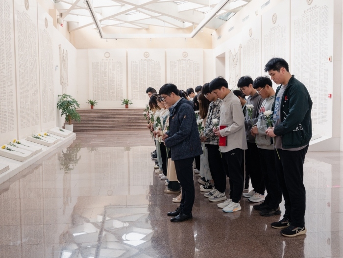 参观学习过程中,大家依次参观了“战前形势”“战役准备”“突破江防”“战役胜利”“英烈业绩”等展厅。一件件历史文物、一幅幅革命影像,生动再现了渡江战役的艰难险阻和400万军民奋勇南渡的壮阔画面,带领大家走进百万雄师过大江的历史长河,重温了那段靠老百姓用小船划出战役胜利的革命历史。在革命烈士名录墙前,该院师生怀着无比崇敬之情向革命先烈默哀致敬并献上鲜花,深情寄托对革命先烈的无限追思与敬仰。