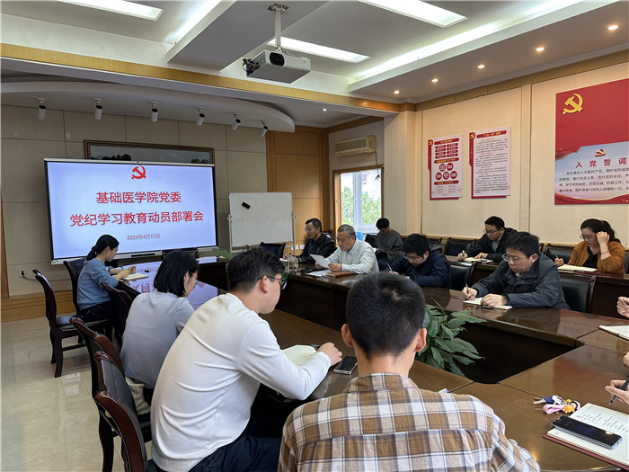 4月17日下午,基础医学院召开党纪学习教育动员部署会,该院党委书记储兵作动员讲话。