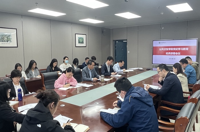 4月24日,公共卫生学院召开党纪学习教育动员部署会议,该院党委书记马军成主持会议并作动员讲话,院党委副书记、纪委书记刘伟传达学习相关文件精神。