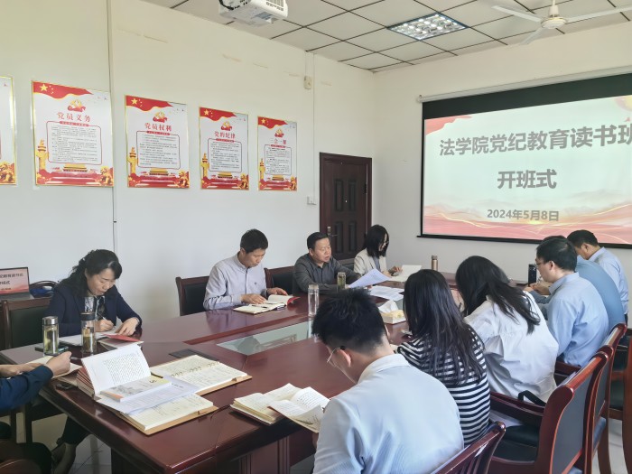 5月8日下午,法学院党委举行党纪学习教育读书班第一次专题学习研讨,围绕《中国共产党纪律处分条例》(以下简称《条例》)第一编《总则》部分进行学习。该院党委书记夏会林主持学习研讨会并作总结讲话。