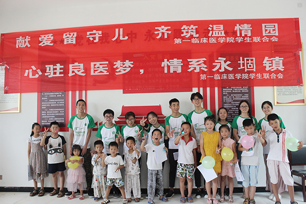 7 月 13 日至 15 日,第一临床医学院 “良医” 社会实践服务队,组织 16 位来自不同年级专业方向的学生,奔赴萧县永堌镇,开展以 “爱心医疗,教育关爱,扶贫结对,点亮微光” 为主题的大学生暑期 “三下乡” 社会实践活动。