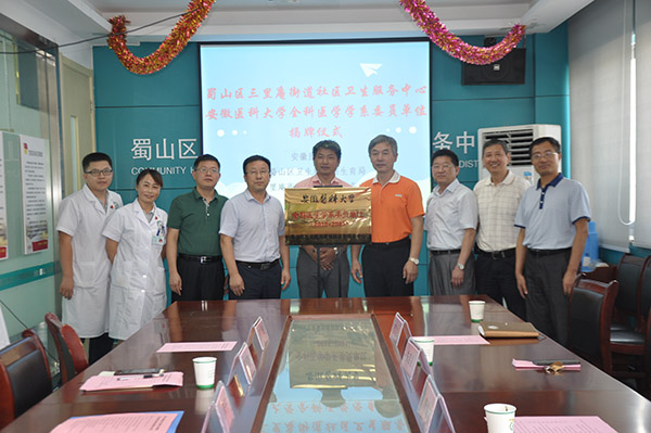 9月4日上午,我校全科医学学系委员单位授牌仪式举行。副校长朱启星出席仪式为省内10家教学医院、20家全科社区实践基地的全科医学学科负责人授牌,并与蜀山区人民政府副区长范恒碧共同为三里庵街道社区卫生服务中心成为我校全科医学学系委员单位揭牌。