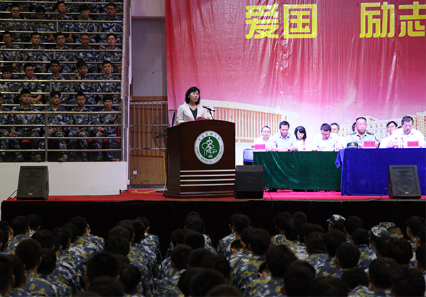 大会在雄壮的国歌声中拉开帷幕。曹云霞首先代表全校师生向来自全国23个省、直辖市、自治区新同学表示热烈的欢迎。同时,也向一直以来支持我校军训工作的国防科技大学电子对抗学院的领导和教官们表示衷心的感谢。