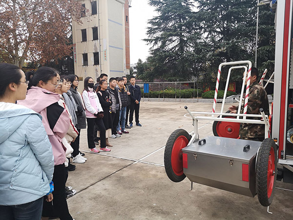 12月4日下午,该院组织30余名2018级临床医学专业新生前往蜀山区消防中队进行参观学习。2名消防中队教官带领同学们参观了新型消防车的内部结构,并且对其各个组成部分进行详细解说和使用演示。消防中队教官介绍了不同消防车的使用范围,以及消防救援人员救灾时所穿衣服和所带工具的性质特点。展示了灭火器的正确用法,说明了不同种类灭火器所适用的不同场合。