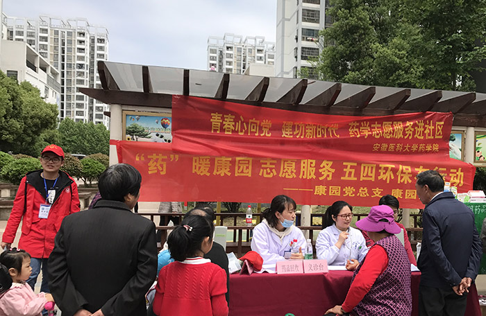 学院积极创新活动载体,组织师生发挥专业特长,深化社会实践,开展社区志愿服务活动,进行用药知识宣传和过期药品回收;加强大学生志愿服务,清理校园蠡舟湖湖面和沿边垃圾,身体力行,践行社会主义核心价值观;引导青年学生积极主动走下网络、走出宿舍、走向操场,开展“青春嘉年华”活动,以5*400米接力跑等形式,弘扬“团结起来、振兴中华”的青春强音,号召新时代青年对五四精神接力与传承。